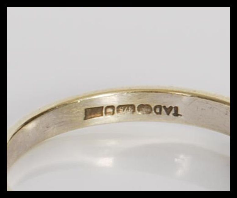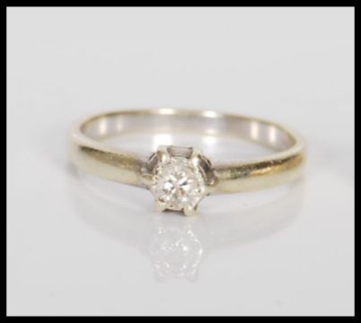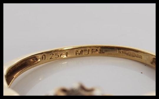 A group of three 9ct gold ladies rings to include a hallmarked solitaire ring set with a round cut white stone (hallmarked Sheffield, size K.5), a hallmarked ring having a two tone cross over design having a cluster of white stones to the head (hallmarked Sheffield, size M), a hallmarked 9ct gold white stone cluster ring with twist design shoulders (hallmarked Birmingham, size N.5).  Weight 6.0g.