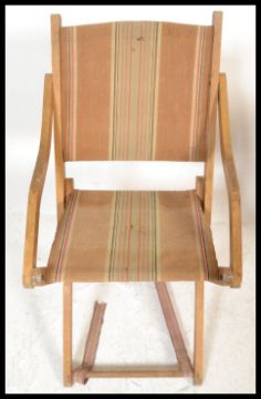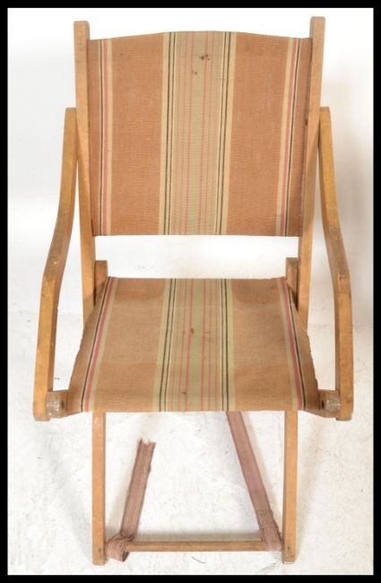 A pair of vintage first half 20th Century folding metamorphic picnic / camping chairs, each chair retaining its original canvas seats. Measures 83cm high x 47cm wide x 83cm depth