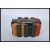 A early 20th Century Art Deco Bakelite poker chips dispenser finished in dark green having carrying handle atop, with different coloured bakelite chips / counters, yellow, red, black and orange.