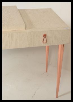 A vintage mid 20th Century Italian white two step staggered sideboard credenza by Cantori, having a single fitted drawer, raised on tapered copper supports. Measures 77cm high x 150cm wide x 50cm depth