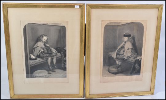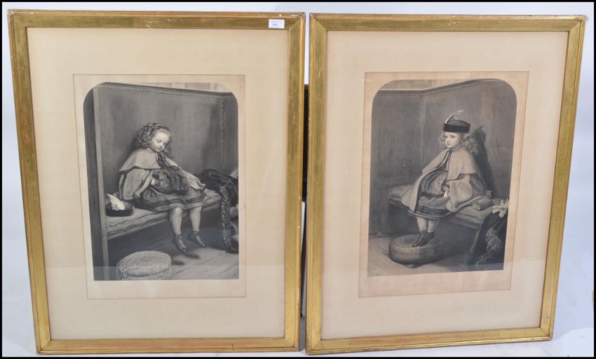 After John Everett Millais (1829-1896) A pair of late 19th Century mixed method engravings titled "My First Sermon" and "My Second Sermon". Both engravings being signed in pencil and having impressed gallery marks SVZ set in in gilt wood frames having gilt slips and being glazed. Frames measure 92 cm high by 72 cm wide, engravings measure 61 cm high by 44 cm wide.