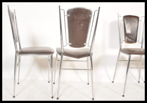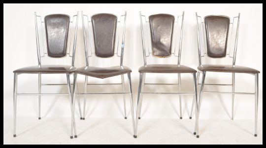 A set of four vintage retro 20th Century 1950's Tubmenager Sa Ranger chrome and faux leather diner type dining chairs raised on chrome tubular supports with faux leather seats and backs. Measures 90 cm high x 40 cm wide x 40 cm deep.