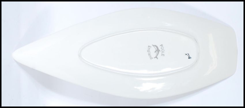 Two 20th Century Poole studio pottery cabinet plates, the spear plate decorated with flowers, stamped and signed to the verso the other of circular form with a sunburst spray of colours, stamped and signed to verso.