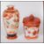 A group of early 20th Century Japanese orange Kutani wares having hand painted oriental scene and floral sprays with gilt detailing throughout, to include two vases and pair of smaller vases, stem vase, two lidded pots and a curved edge dish / plate. All pieces having marks to bases.