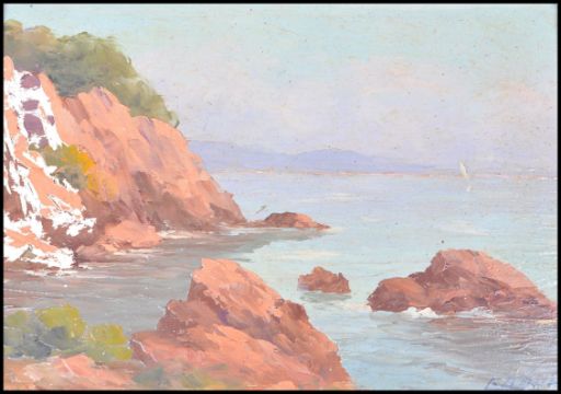 Clement Boyer (1900-) France. Oil on Canvas coastal scene / By the sea painting being signed to the corner and framed. Measures 33cms x 26cms ( frame) 22.5cms x 16cms ( board at back )