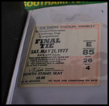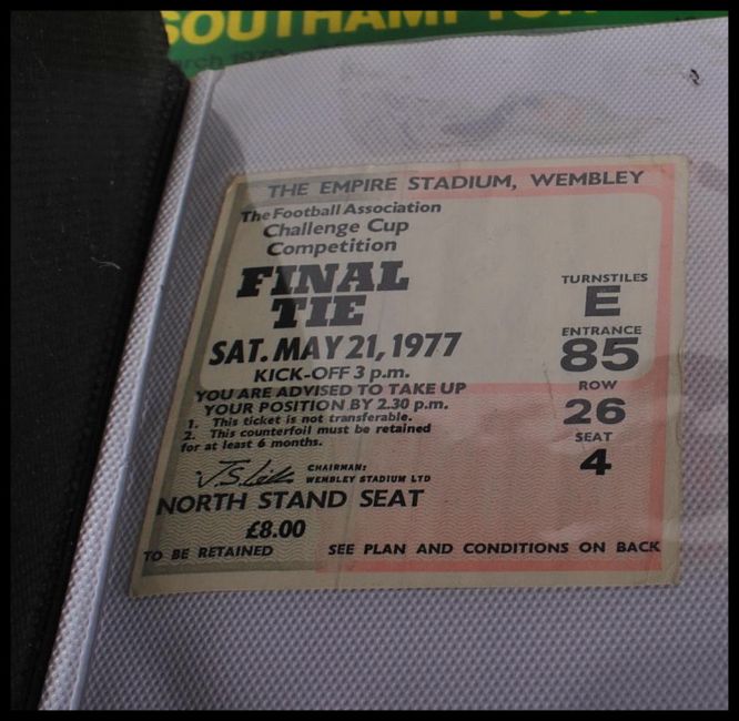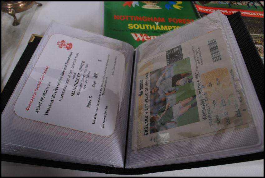 A collection of FA Cup football programmes having their tickets to include matches between Everton v Liverpool 86, Coventry v Tottenham, Manchester v Tottenham Hotspur 81, Arsenal v West Ham United 80 etc. Together with an album of football tickets League cup, FA cup and International matches, most tickets for Wembley.