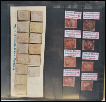 GB Victorian stamps. A study of antique penny values both 1d Red (75) and 1d Lilac (99).