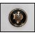 A 19th Century Victorian jet mourning brooch of round form having gilt borders and the initial ' W ' to the centre, with a T bar pin to the verso (clasp missing). Measures 3.5cm.