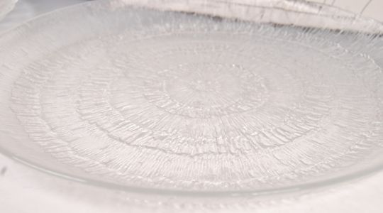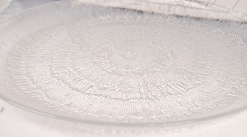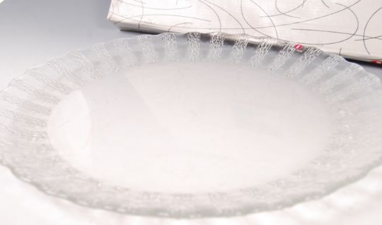 Tapio Wirkkala and Valto Kokko - Iittala Crystal - Two mid to late 20th century retro vintage Finnish studio art glass plates from the ranges Solaris and Vellamo. Each having textured undersides and smooth surface. Both within their original boxes. Measures; 30cm diameter.