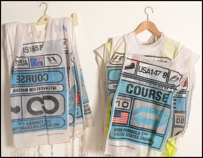 A large collection of assorted Formula 1 / motorsport Pit / Course stewards bibs - largely all from the early 2000's, and all from various F1 and other races. Some named, others not. Various advertising interest. All obtained in person by the vendor who stewarded the races and retained the bibs