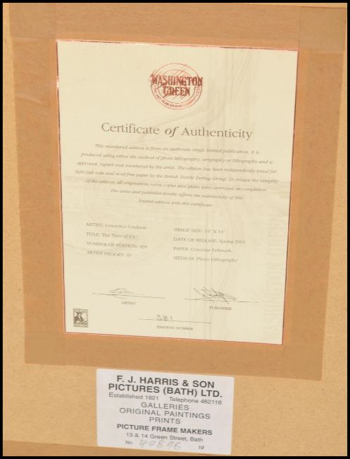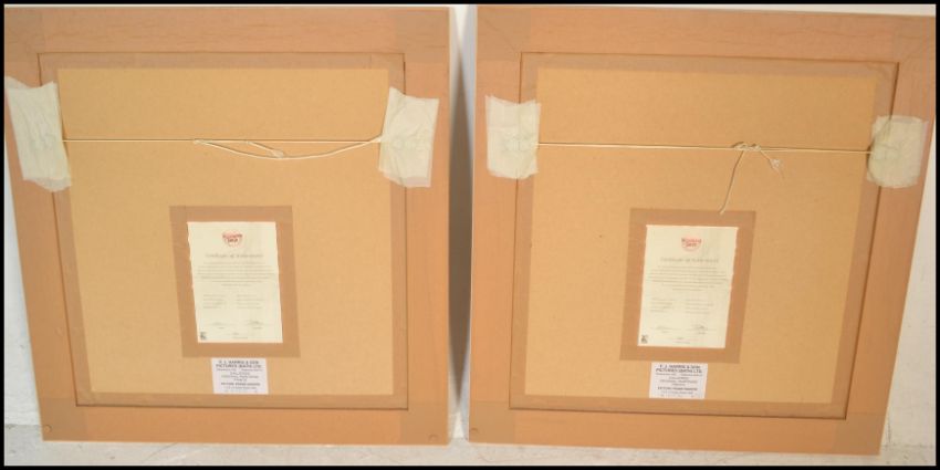 Lawrence Coulson - Two framed and glazed limited prints by Lawrence Coulson, one being entitled 'The two of us' edition 381 / 495 and 'A stolen moment' edition of 381 / 495. Both being signed by the artist to bottom right and having certificate of authenticity to verso. Measures 67cms x 71cms.