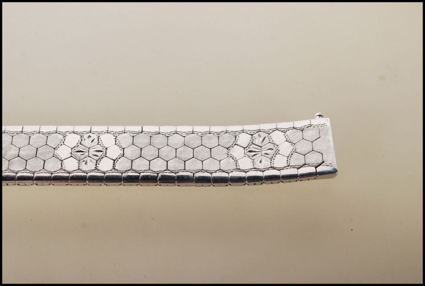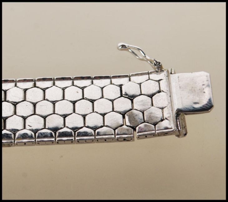 A stamped 835 silver hexagon / honeycomb link bracelet and having a tongue and groove clasp. Measures 7 1/2 inches. Weight 45.9g.