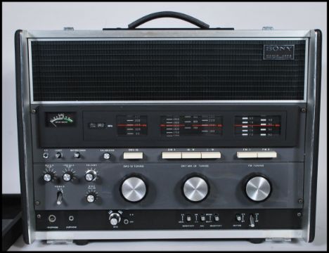 A vintage retro 20th Century SONY CRF-230 World Zone Receiver SW/MW/LW/FM with original box, cover and power leads.