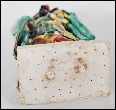An unusual 18th century / 19th century Staffordshire figurine of a moor. The blackamoor turban clad figure with curved Saif Shamshir raised on a plinth base. Measures: 13cm tall.