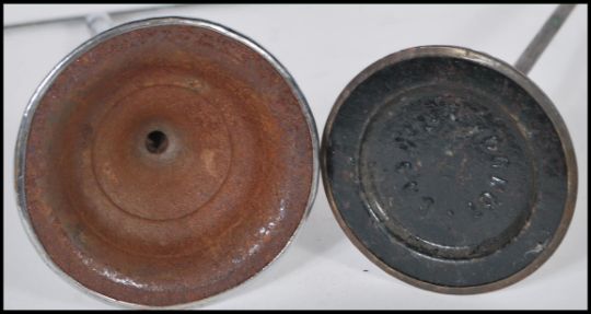 A group of three early 20th Century vintage shop display stands raised on curricular bases, two being finished in chrome. Measures: 32cm x 16cm.