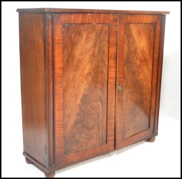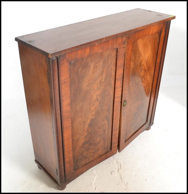 A Regency 19th century George III flame mahogany chiffonier sideboard base raised on bun feet with twin full length fielded panel doors. Together with a walnut Victorian chiffonier sideboard base. Measures 86cm high x 104cm wide x 36cm depth.