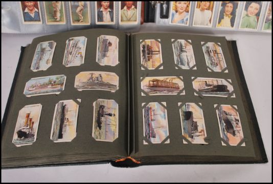 A group of three cigarette card albums including a selection of vintage filmstar cards such as Gallahers 'My Favourite Part', 'Film Episodes' ,'Portraits of Famous Stars' etc. sporting related cards including Ogden's 'Jockeys, 1930' Churman 'Kings of Speed', Wills's 'Cricketers, 1928', Player's 'Footballers 1928', 'Cycling' , the American Tobacco Co sailing ships along with a selection of other mixed sets and part sets.