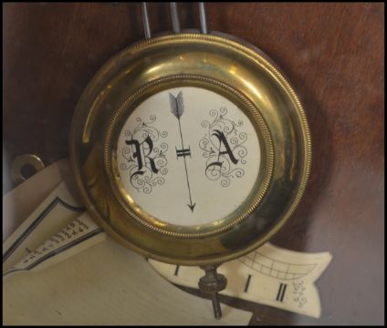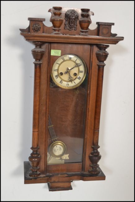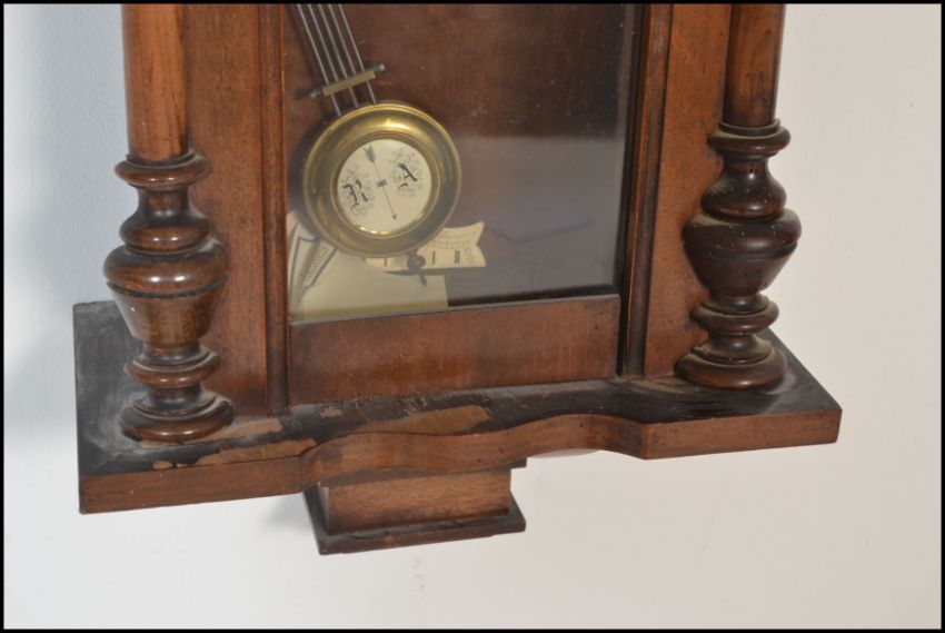 VIENNA REGULATOR WALL CLOCK, two train eight day movement, the round enamel dial with Roman numerals, contained in an architectural mahogany case. Measures 75cms high.