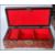 A collection of wooden boxes to include a Japanese box having a red foliate decoration and a cork Diorama lid, a carved wooden box having carved foliate and landscape scenes, a wooden box having Chinese brass decoration along with a Japanese cork diorama within a glass case.