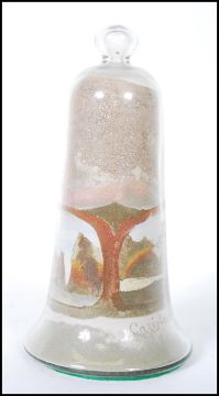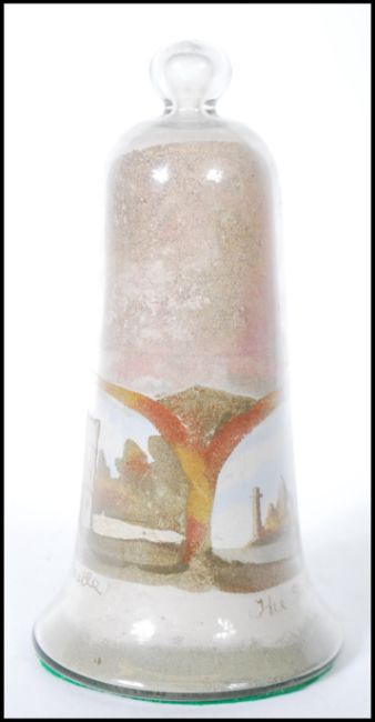A 19th Century Victorian Isle of Wight glass bell coloured sand paperweight depicting Carisbrooke Castle and the Needles.