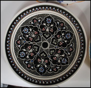 A collection of stoneware Moorish/ Spanish charger plates dating from the early 20th Century, each plate decorated in polychrome geometric designs, some signed to the underside.