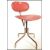 A retro 20th Century industrial machinists swivel chair having a quadrapod base and central column seat and backrest in red leatherette upholstery. Marked 'Sitting Pretty'.