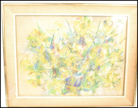A mid century pastel abstract study painting being framed and glazed, marked to the verso  William Gear RA ( 1915 – 1997 ) Further signature/name  to edge of mount on front and signature of W Gear to the verso. Unknown Provenance.