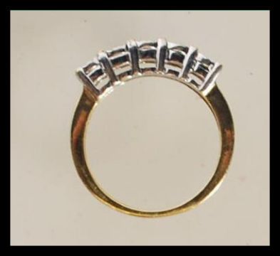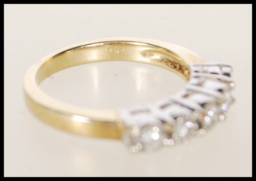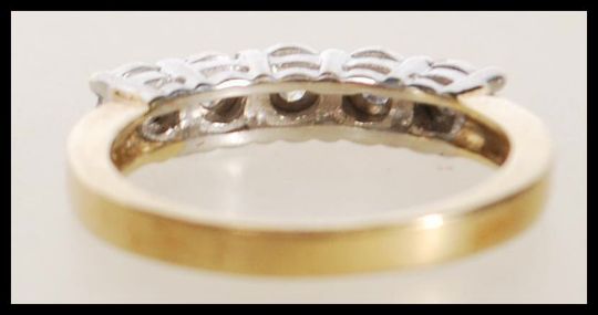 A hallmarked 9ct gold ring illusion set with five brilliant cut diamonds. Hallmarked Sheffield. Estimated diamond weight 15pts. Weight 2.8g. Size J.