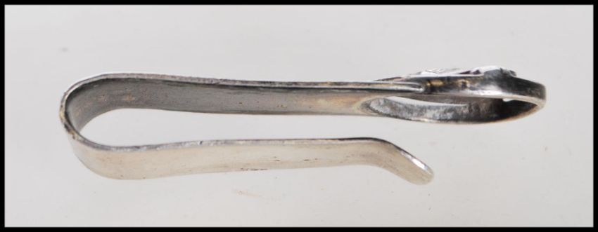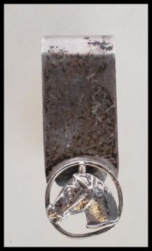 A silver hallmarked money clip having a pierced decoration horse portrait. Bears import hallmarks to the back. Weight 20.1g.