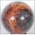 A precious stone rhodonite specimen sphere having red and green mottled colouration, on a chromed base. Measures approx 11cm .