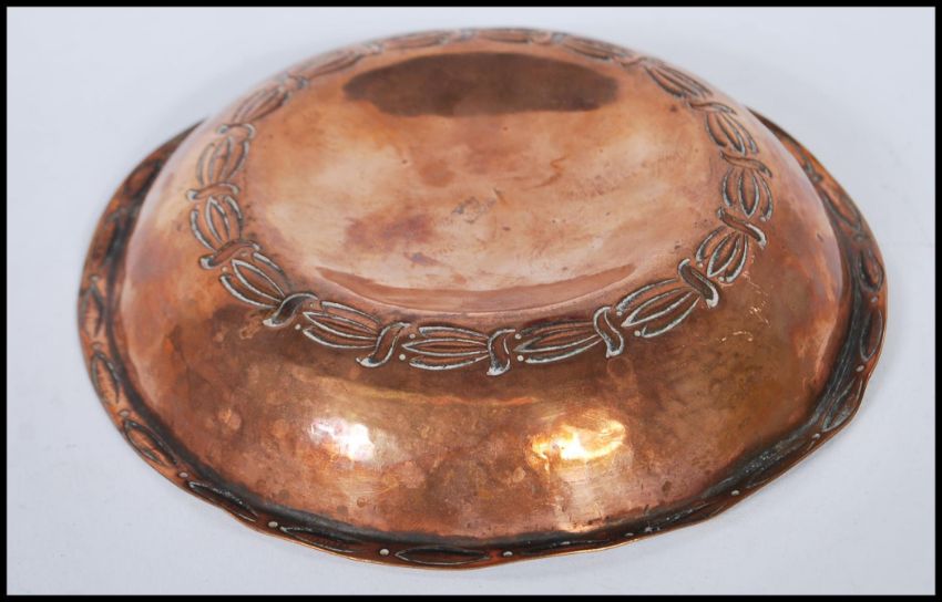 *****WITHDRAWN*****An early 20th century  Duchess of Sutherland Cripple Guild an electroplated bowl on copper marked D.S.C.G with a crown above. The dish of circular form with fluted and matted decoration on a circular foot. Measures diameter 14cm.
