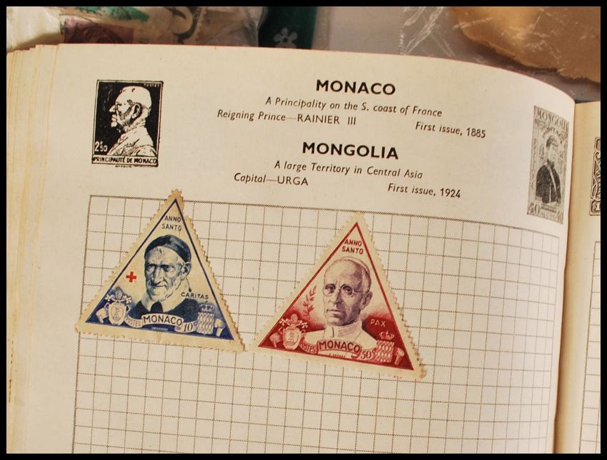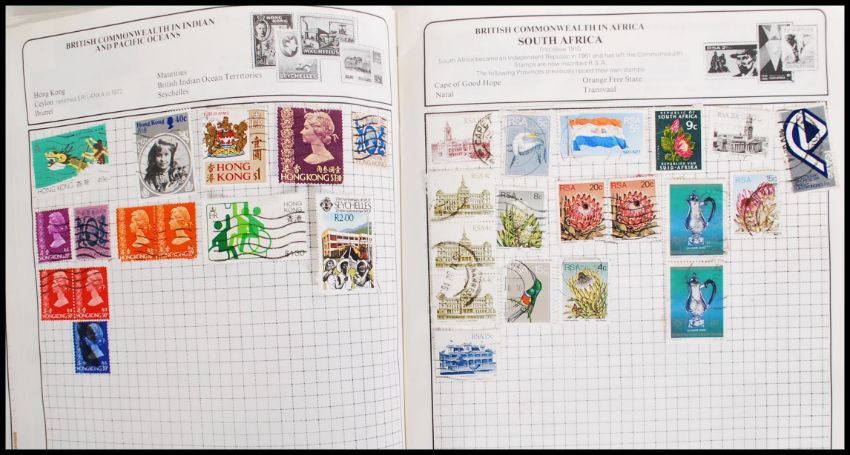 A collection of world stamps, mostly 20th Century but also including some 19th Century examples to include an Improved Postage stamp album having mostly pre decimal stamps including a good selection from Europe, New Zealand, America etc. Two Globe Master stamp albums containing mostly post decimal stamps, an album of Royal Navy stamps and ephemera etc.