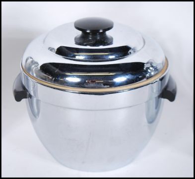 Two vintage retro Thermos ice buckets to include a chromed example with bakelite handles and a cream example with red handles together with two Thermos chromed jugs. Tallest measures: 20cm tall.