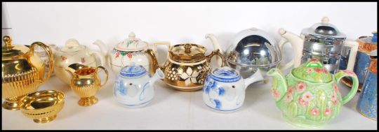 A collection of teapots dating from the early 20th Century to include an example by Clarice Cliff, Chinese, Staffordshire, Torquay Ware etc.