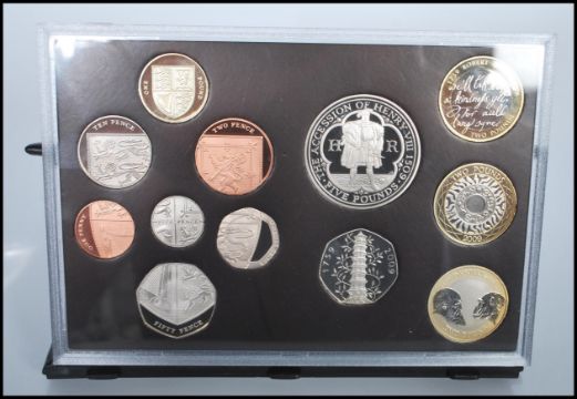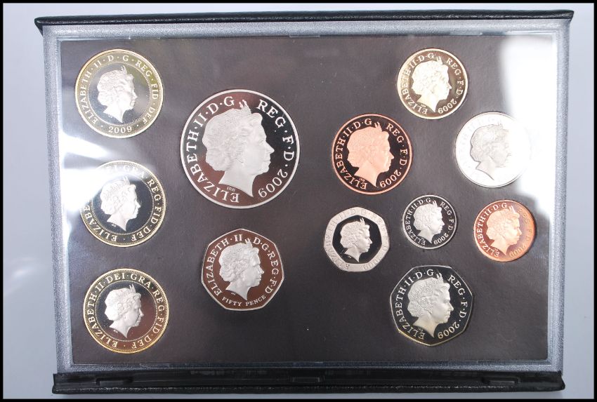 A Royal Mint 2009 UK proof twelve coin set including scarce Kew Gardens 50p, within leather case with certificate.