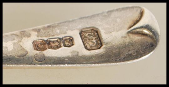 A selection of silver hallmarked items to include a William Fountain silver toddy spoon (hallmarked London 1844), a silver hallmarked tea spoon (hallmarked Sheffield 1924), a napkin ring (hallmarked Birmingham 1914) and a fish knife of small proportions (hallmarked Sheffield 1901). Total weight 56.3g.