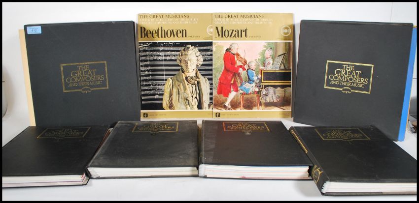 Vinyl lp records- The Great Composers and Their Music vinyl record set, consisting of approx fifty four records in their presentation boxes and fifty two cased magazines that match. Various composers to include Beethoven, Mozart, Brahms, Tchaikovsky, Bach, Dvorak etc.