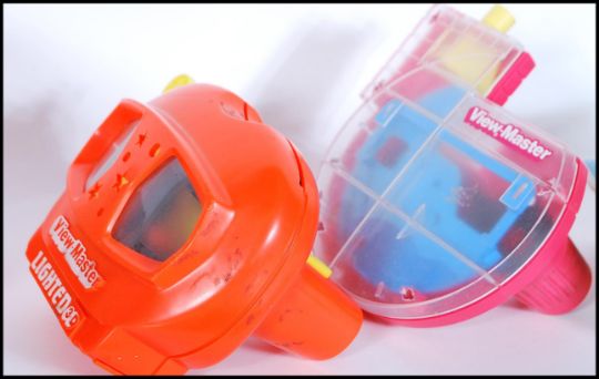 A group of vintage and retro View master slide viewers and slides to include boxed bakelite 3-Dimension lighted stereo viewer with boxed plug, Beatrix Potter slides, Spider-Man,Batman, Wind In The Willows, Pink Panther, Dungeons and Dragons etc.