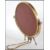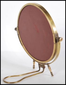 A 20th Century brass bevelled edge swing mirror of circular form raised on adjustable easel stand. Measures 23cm tall by 23cm wide.