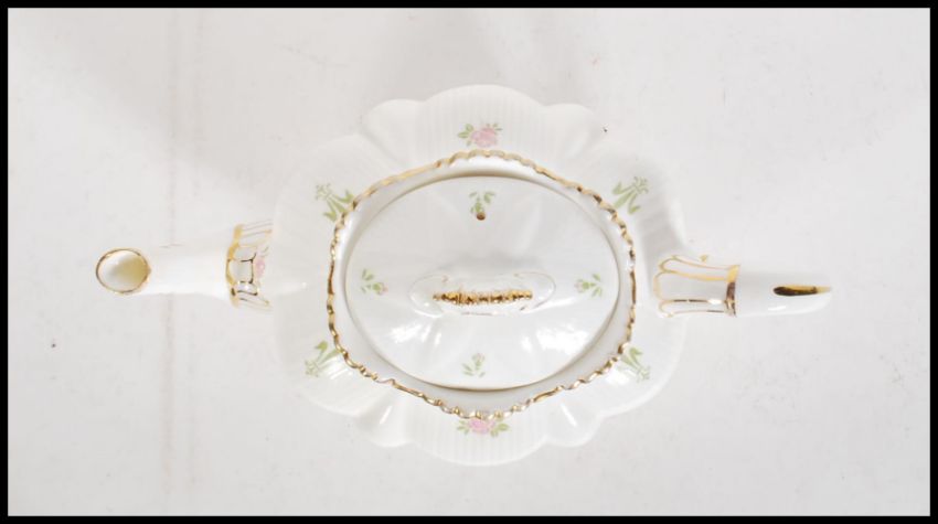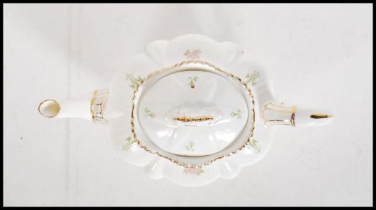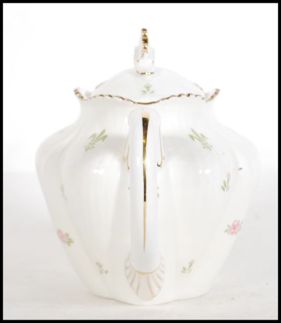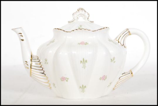 A late 19th / early 20th Century high Victorian dainty teapot by Wileman Foley (early Shelley) having floral decoration and gilt detailing to spout and handle. Marks to base, Rd272101. Measures 14cm tall by 21cm wide.