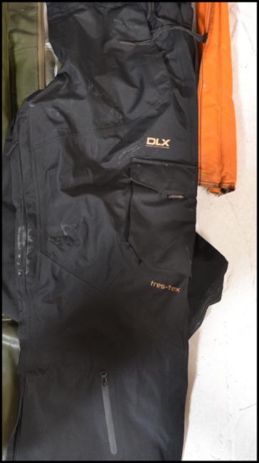 A collection of vintage sea fishing items to include fishing rods to include a Shakespeare Atlas and another rod, waders etc contained within a Kevin Nash case.