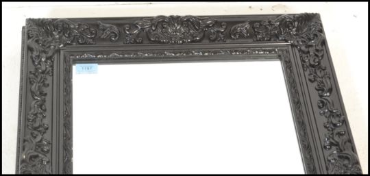A large freestanding bedroom antique style Versailles type easel mirror. Full size with carved cushion frame housing bevelled plate mirror glass to centre with easel stand back. Measures: 169cm high x 55cm wide.