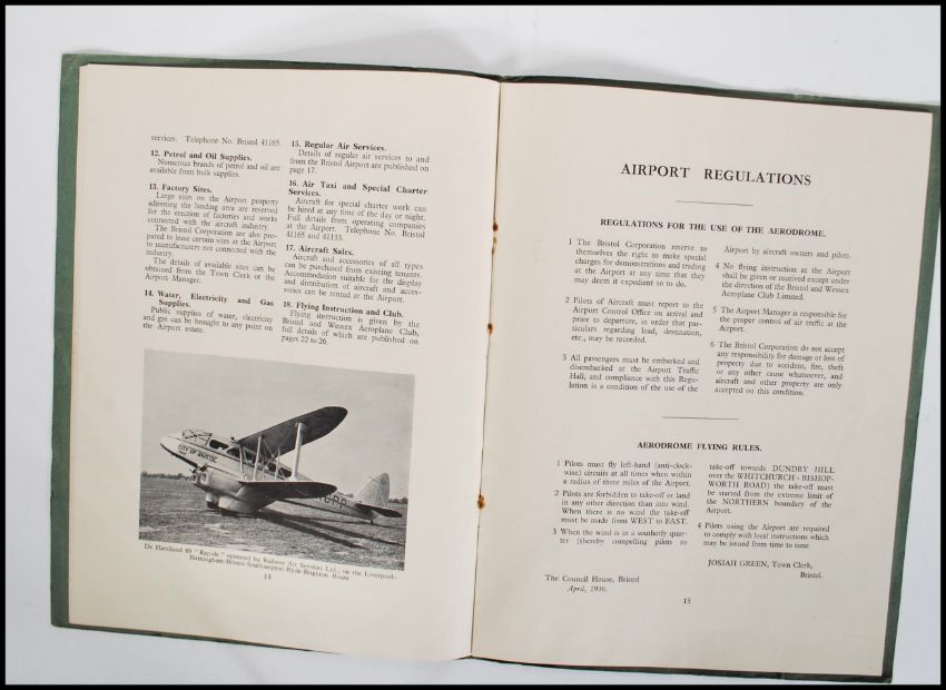 Local Interest- A guide booklet for Bristol Municipal Airport, describing prices and facilities with illustrations throughout. Having High Performance Aircraft " Bristol " advertising to verso with advertising pages to front and back.