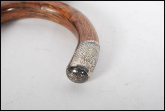 A silver hallmarked malacca walking stick with crook handle and silver knop end. Hallmarks for Birmingham 1902 together with a silver knop top promenade cane and a blackthorn walking stick