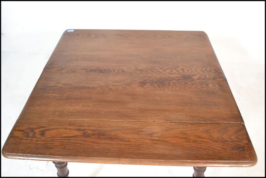 A late Victorian Arts and Crafts ecclesiastical solid oak table being in the manner of Morris & Co. Raised on ring turned tapering legs with fitted frieze having central drawer. Square chamfered edge table top. Measures:74cm high x 87cm wide x 89cm depth.