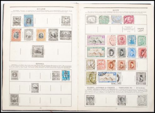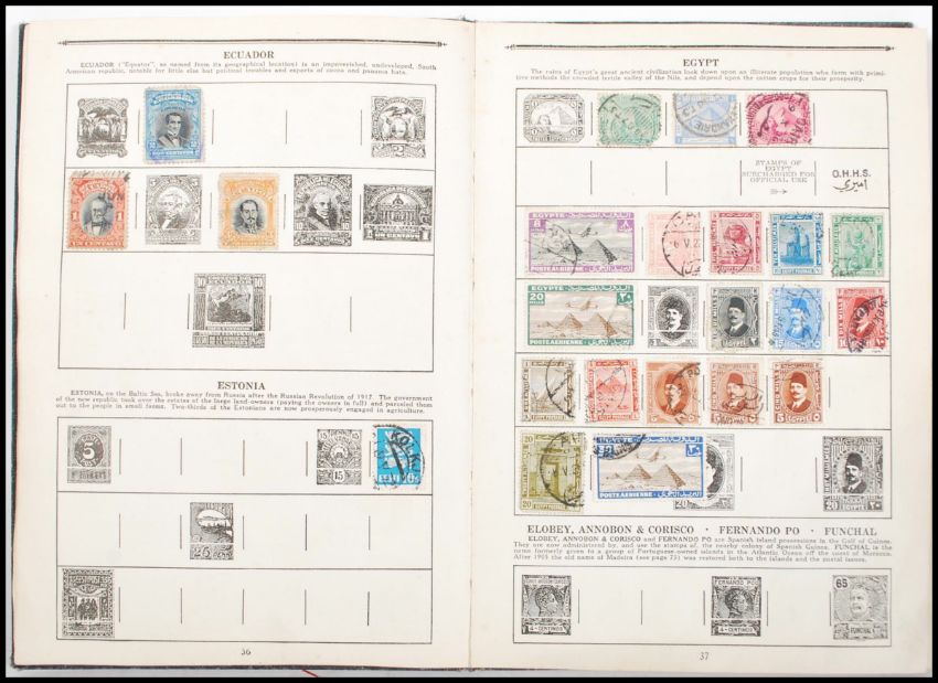 Stamps - a good vintage all-world stamp album, including many Victorian / George V stamps. 1d Penny Reds, 1d Penny Lilacs, interesting stamps from Eqypt, India and other countries. Interesting collection.