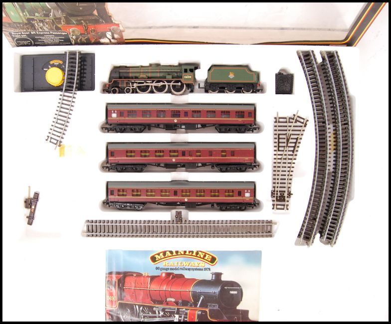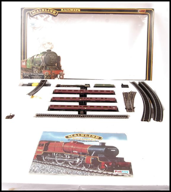 A vintage Palitoy made Mainline 00 Gauge model railway locomotive train set 'Royal Scot' Br Express Passenger Electric Train set. Appears mint in the original box.
