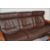 An Ekornes Stressless three seater brown leather Reclining Sofa of Scandinavian design, having teak show wood frame. Together with a pair of matching ottomans. Measures: 95cm high x 225cm wide x 74cm depth.