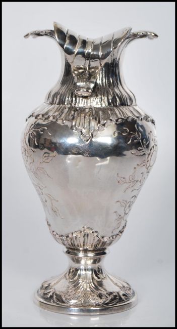 A late 19th / early 20th Century continental silver vase of tapering form. The vase having molded leaf rim with engraved floral detailing to the body raised on a circular footed base. Stamped 800. Weighs 213.44g. Measures 16cm tall.