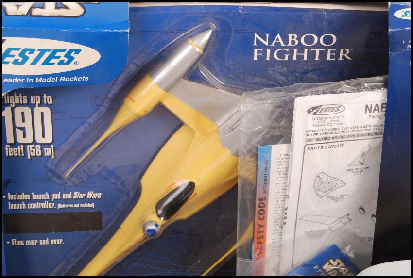A collection of assorted Star Wars merchandise and toys to include an Empire magazine with Kylo Ren Action figure, 2x Flying Action Model Rocket Naboo Fighter, card game and 2x Galoob Micro Machine type playsets. Along with an MB Ghost Castle board game. Good collection.